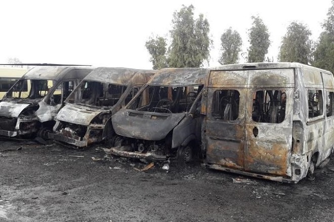 Il rogo ha distrutto 22 pulmini adibiti al trasporto scolastico della società privata Tundo. Dai primi rilievi effettuati appare possibile la natura dolosa delle fiamme, innescate in diversi punti.