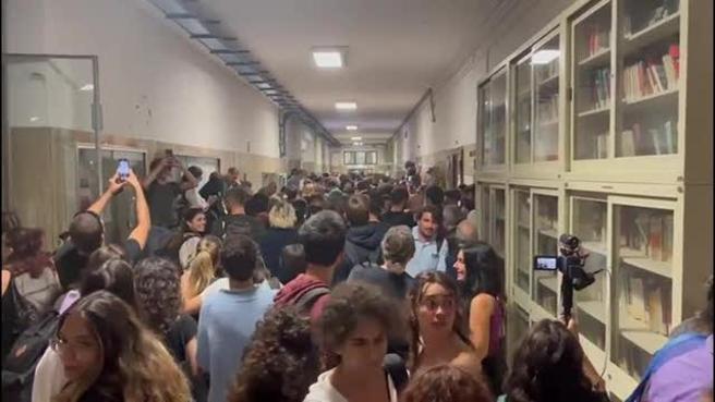 Durante l'assemblea, inoltre, gli studenti hanno chiesto a gran voce che la Rettrice, Antonella Polimeni, rassegni le sue dimissioni, ed è stato letto un comunicato sulle cariche contro gli studenti che martedì hanno protestato contro un incontro organizzato da Azione Universitaria, a cui hanno partecipato il nuovo deputato di FdI Fabio Roscani e Daniele Capezzone. E' stata convocata un'assemblea, hanno detto, perchè "il capitalismo buono non esiste e nell'ateneo che esige controparti nelle iniziative, in questa occasione l'imparzialità non è stata un valore". "Ci teniamo a dire che le nostre aule non devono essere utilizzate dalle loro passerelle politiche", ha proseguito una studentessa, che ha letto la ricostruzione di quanto accaduto. In seguito, gli studenti hanno detto, in coro, "siamo tutti antifascisti".