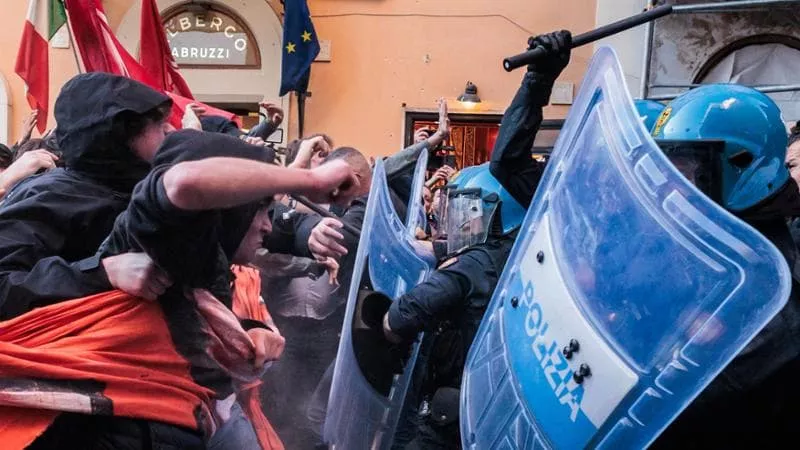 Centinaia di persone, che si sono ritrovate in Piazza Barberini, hanno cominciato a percorrere Via del Tritone per dirigersi alla volta del Parlamento, e si sono scontrate con le Forze dell'Ordine, schierate in tenuta antisommossa. I manifestanti, che hanno colpito gli agenti con bastoni e si sono fatti scudo con dei grossi pannelli, sono stati respinti.