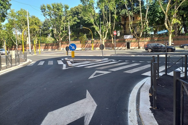 L’intervento su via Nomentana, realizzato da Roma Servizi per la Mobilità, ha riguardato: il rifacimento della segnaletica in tutta l’area d’incrocio; l’ampliamento e la riconfigurazione degli spazi pedonali per la messa in sicurezza dei percorsi e degli attraversamenti, la protezione dei passaggi pedonali con nuove isole fisiche ‘salvagente’; la riconfigurazione e protezione degli spazi di sosta per garantire la massima visibilità; l’abbattimento di tutte le barriere architettoniche con la realizzazione di nuovi scivoli e la protezione degli spazi pedonali ampliati con elementi dissuasori parapedonali a ‘croce di S. Andrea’ e la riconfigurazione degli impianti semaforici.