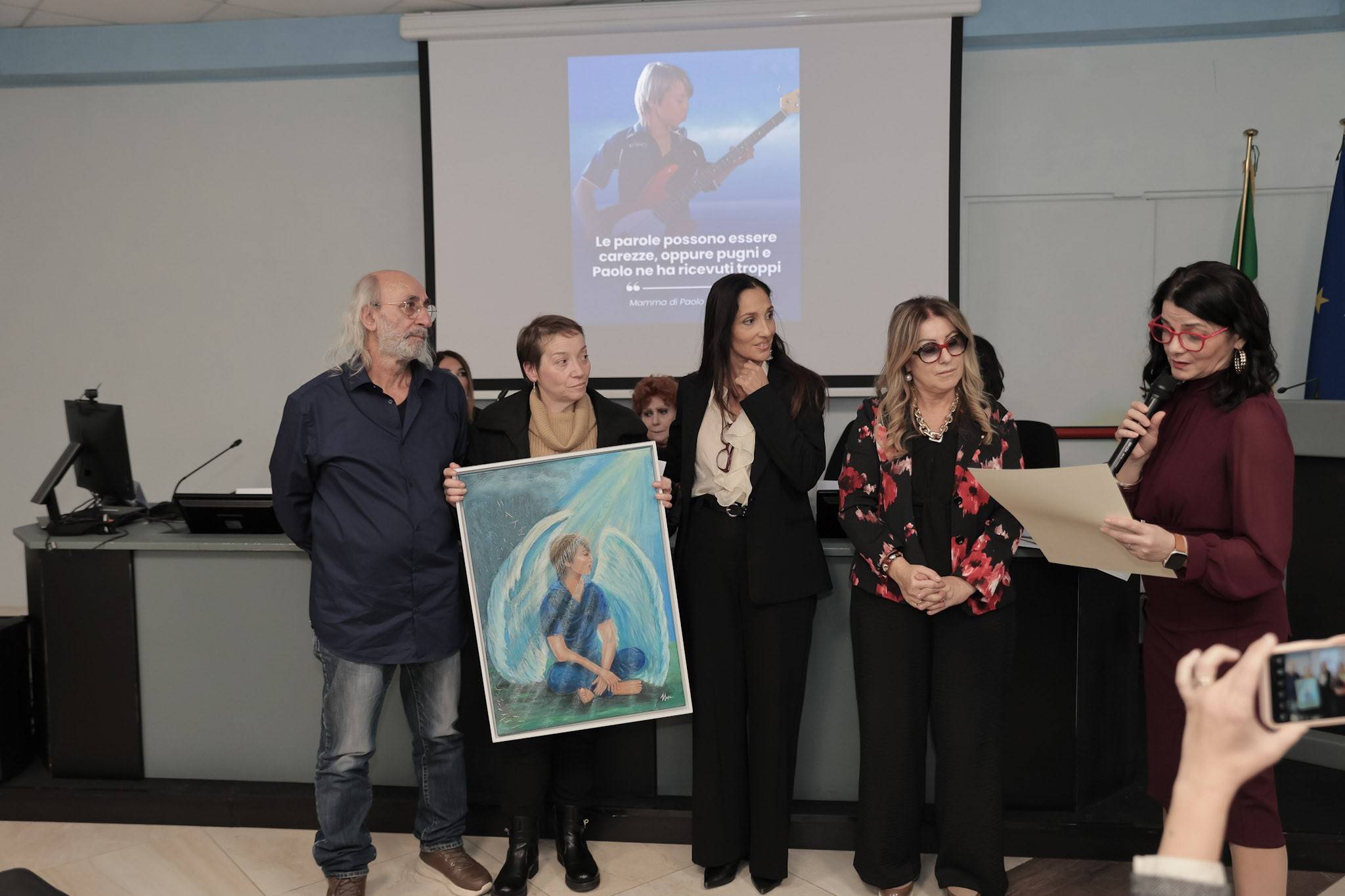 Il momento più toccante e intenso della manifestazione è stato quello dedicato alla memoria di Paolo Mendico, giovane vittima di bullismo, la cui storia ha profondamente segnato i presenti. I genitori, Giuseppe Mendico e Simonetta La Marra, hanno condiviso con grande coraggio la loro testimonianza, trasformando il dolore in un messaggio di sensibilizzazione e di amore universale. Le loro parole, semplici e autentiche, hanno attraversato la sala come un abbraccio collettivo, ricordando a tutti quanto sia necessario ascoltare, comprendere e agire per prevenire ogni forma di violenza e isolamento. Nel silenzio commosso del pubblico, è seguita la consegna dell’opera “Wings of Love”, realizzata dall’artista Fabiana Sepe e donata alla famiglia di Paolo. Un gesto di profonda umanità e di luce, simbolo della possibilità di rinascita attraverso l’arte e la memoria. “Quest’opera è nata per portare pace e consapevolezza - ha spiegato l’artista - per ricordare che l’amore può ancora nascere dove ci sono arte e bellezza.” Un applauso lungo e carico di emozione ha suggellato questo momento, che resterà come il cuore simbolico di tutta la manifestazione.