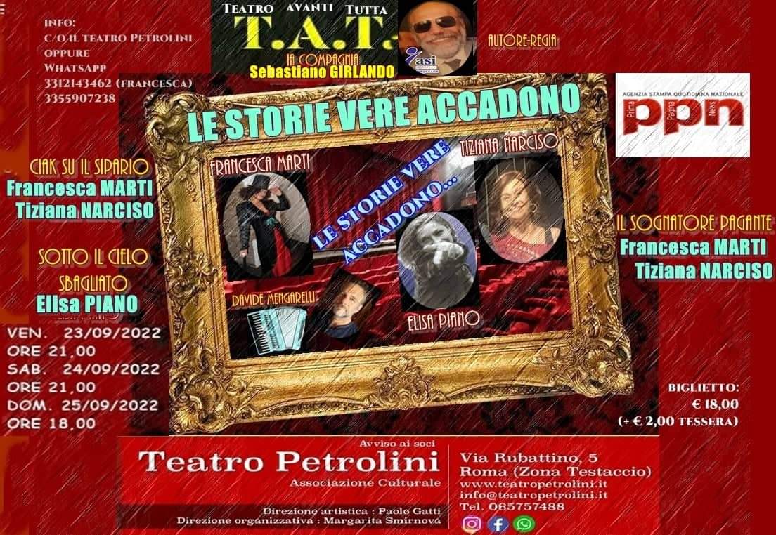 Lo spettacolo cerca di dare una possibile risposta al dubbio eterno che quotidianamente ci assale: “la nostra vita ci appartiene?” oppure sarà il risultato di decisioni che altri assumono al posto nostro? Tale circostanza ci induce ad accettare senza spesso capire… e lasciamo ai ricordi o alla memoria il compito di elaborare i fatti … ormai successi. Quindi abbiamo tentato di analizzare l’arcano dando al Teatro una funzione terapeutica e per ciò stesso di saggezza magistrale. Ecco quindi le storie vere … accadono: