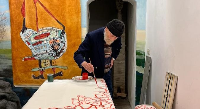 Nella sua arte convivono influenze di arte povera, arte informale, pop art e tanta umanità. Lui stesso dice: “l’arte è un gesto umano” e ne ha fatto spesso lo strumento per denunciare situazioni gravi o dolorose come quella dei migranti in mare.