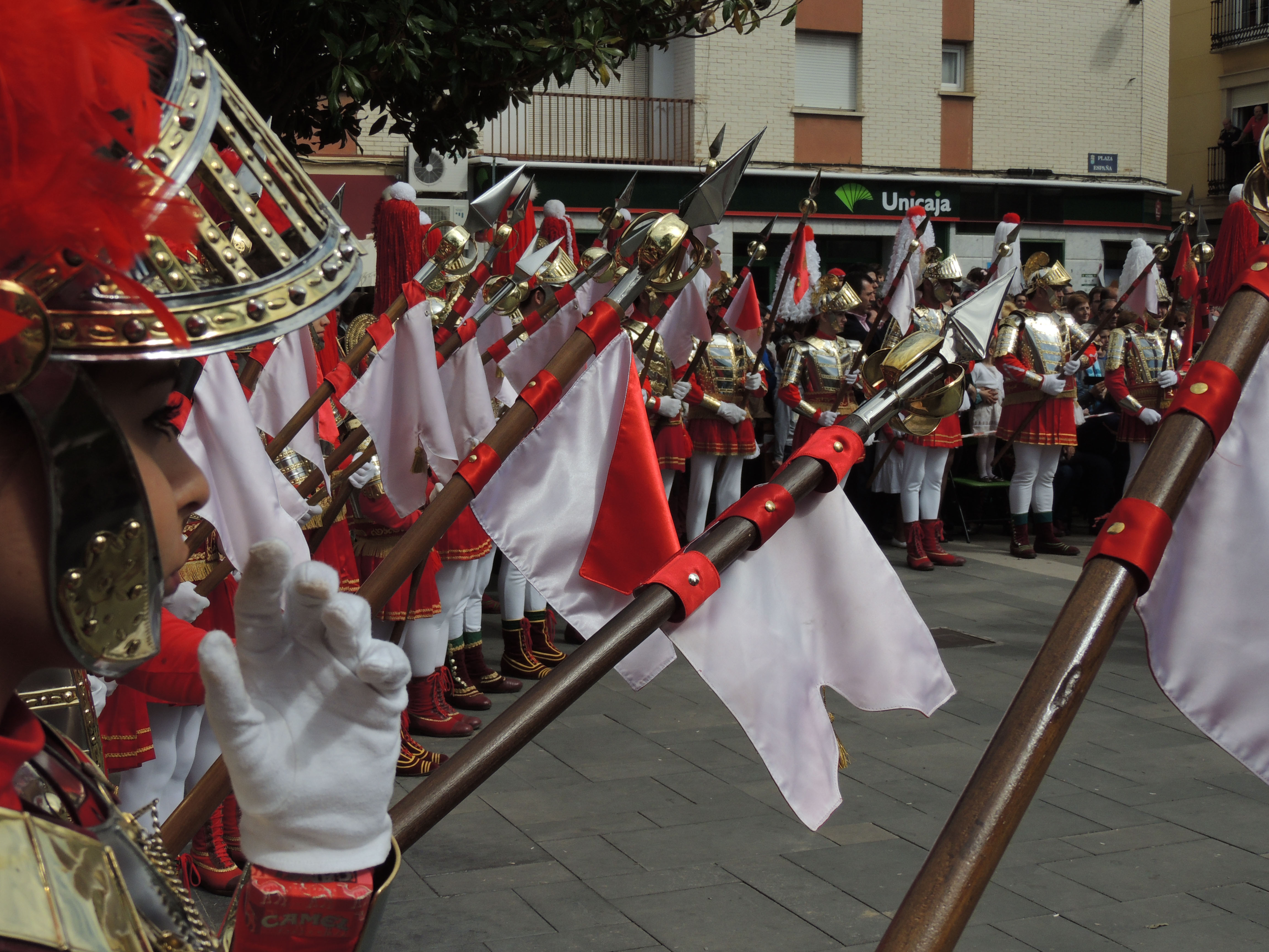 Le origini degli "armaos" risalgono al XVI secolo, nella cornice che combinava l'atmosfera militarizzata dell'epoca, derivata dalla Chiesa riconciliata dopo Trento, insieme all'ideale cavalleresco impregnato nell'Ordine di Calatrava grazie ai suoi frati, metà monaci e metà soldati, sempre desiderosi di combattere il male. Gli "armaos", con il loro caratteristico costume - composto da giacca rossa, ricoperta da bande di raso rosso con frange dorate, pantaloni bianchi o blu sotto il ginocchio riccamente ricamati, così come le gonne, senza dimenticare gli stivali e le calze di stoffa, e il loro pesante elmo piumato o decorato con pompon colorati e lance, spade e scudi - sfilano in processione, scandendo i loro passi e le loro evoluzioni al suono di tamburi, tamburelli e trombe; la loro partecipazione agli allestimenti della Settimana Santa di Calatrava riflette la dualità tra sacro e profano, portando un elemento festoso e giocoso all’interno delle celebrazioni. Tra i soldati "cattivi" non può mancare il più cattivo per eccellenza di quella tragica settimana: Giuda Iscariota. La presenza di tutti i personaggi nelle processioni, insieme ad altri elementi come musica, artigianato e gastronomia, contribuisce alla creazione di un'esperienza culturale unica e molto sentita.