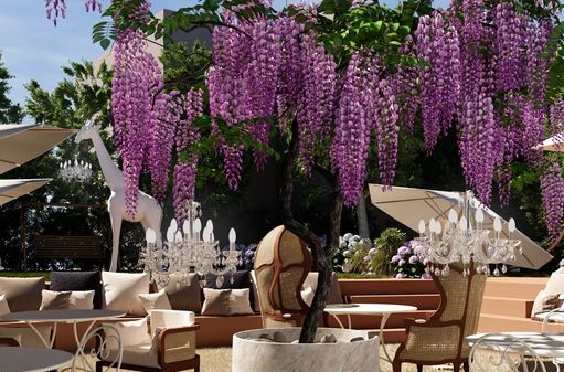 Piante di glicine e rose, motivi magici, baldacchini, altalene, lampade artistiche, la nuova Area Spa e il giardino segreto in cui si fondono interno ed esterno, tranquillità e ispirazione, ponendosi come uno spazio prezioso dedicato esclusivamente alla rigenerazione di corpo e mente.