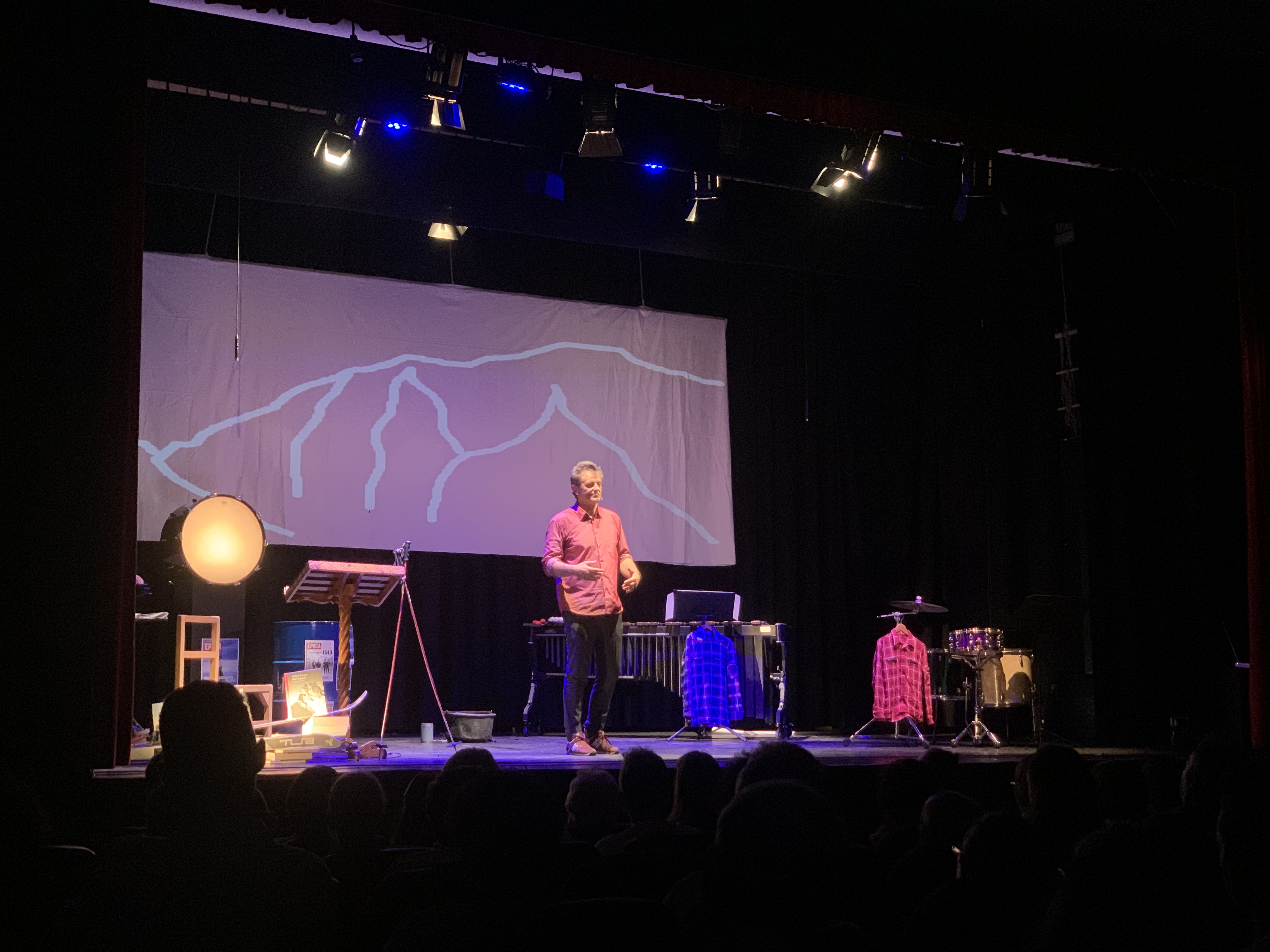 La montagna Ma lo spettacolo è inevitabilmente anche un'ode alla montagna e alle sfide dell’uomo. Guardare una cima da lontano vuol dire osservare lo spettacolo della natura, la sua magnificenza. Gli echi delle parole, dei passi e delle pietre rotolanti sembrano perdersi in un ronzio sotteso, un suono impercettibile ma presente.