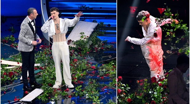 Durante la sua esibizione, nel corso della prima serata del Festival, aveva distrutto il "giardino di rose" allestito sul palco dell'Ariston.