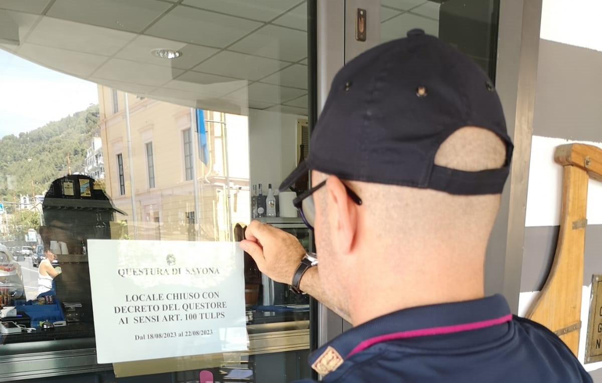 In particolare durante questo periodo estivo l’attenzione è massima sulla prevenzione ed il contrasto alla vendita e somministrazione di bevande alcoliche a minori. In questo ambito si inserisce il provvedimento con il quale viene sospesa per cinque giorni, ai sensi dell’art. 100 Tulps, la licenza di somministrazione di alimenti e bevande di un bar di Laigueglia.