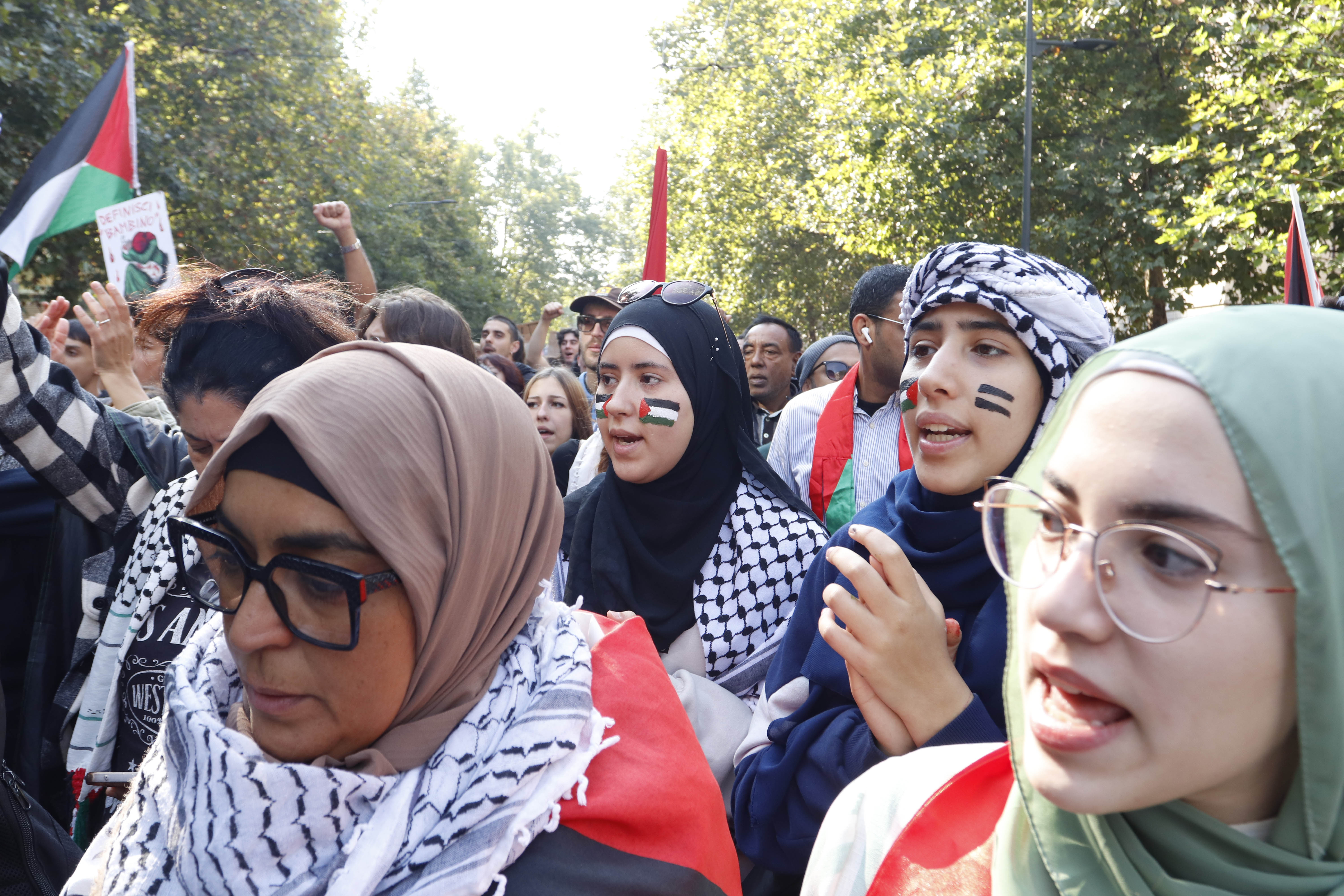 Arrivati davanti alla sede di Fratelli d'Italia, i manifestanti hanno fatto partire cori contro la premier Giorgia Meloni e i vicepremier Matteo Salvini e Antonio Tajani. Poi, hanno percorso via Sonnino e via XX Settembre, bloccando il traffico nelle arterie limitrofi, e sono arrivati prima in via Roma, poi in piazza del Carmine, per concludere la manifestazione. A scandire la manifestazione, un solo coro: "Palestina libera". In corteo c'erano famiglie, studenti, lavoratori, anziani e giovanissimi, per un messaggio di pace.