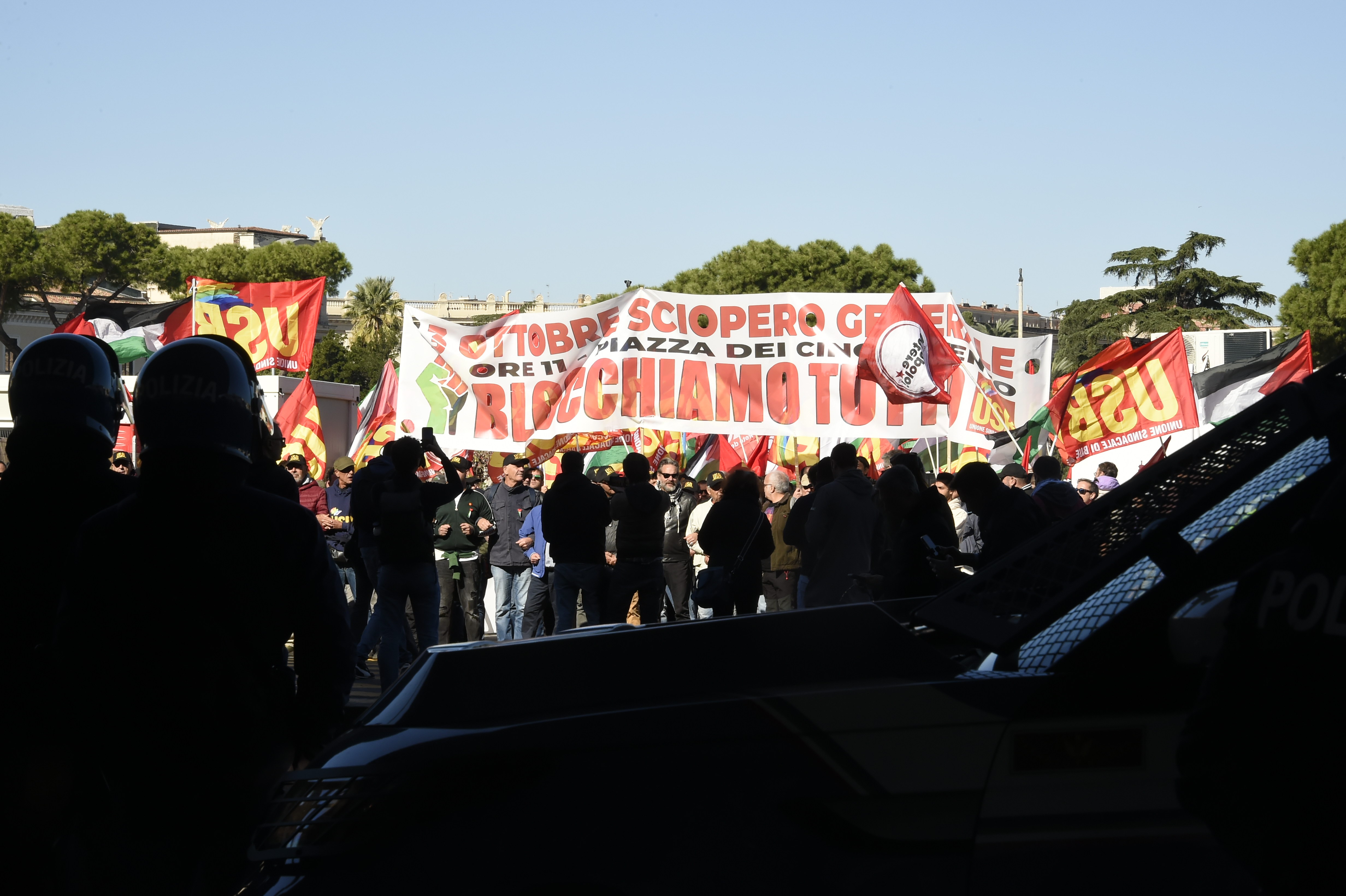 A Roma, sono migliaia le persone in piazza. "Siamo meravigliosi, siamo 300 mila", dichiarano gli organizzatori dell'Usb, in riferimento alla sola parte del sindacato di base. Stando a precedenti stime delle forze di polizia, i partecipanti sarebbero 60 mila. I manifestanti percorreranno un tratto della tangenziale e della parte urbana della A24.