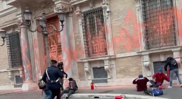 Tre attivisti sono stati tratti in arresto e altri due denunciati per l'imbrattamento della facciata del Senato, rivendicato da Ultima Generazione.