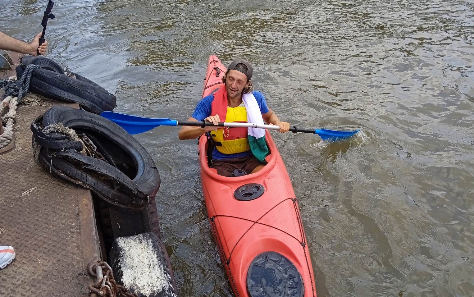 Simone Curati, appena arrivato sulla banchina del molo del tempio, ha incontrato anche l’acquirente del suo kayak che ora potrà percorrere altri mari ed altri fiumi, vedere nuove avventure ed essere soggetto di altri panorami. La contrattazione è avvenuta ancor prima dell’attracco, i due oggi sono amici. C’è un legame mistico ed intimo tra coloro che vivono nel viaggio, nello scorrere sulla superficie d’acqua a bordo di un kayak.