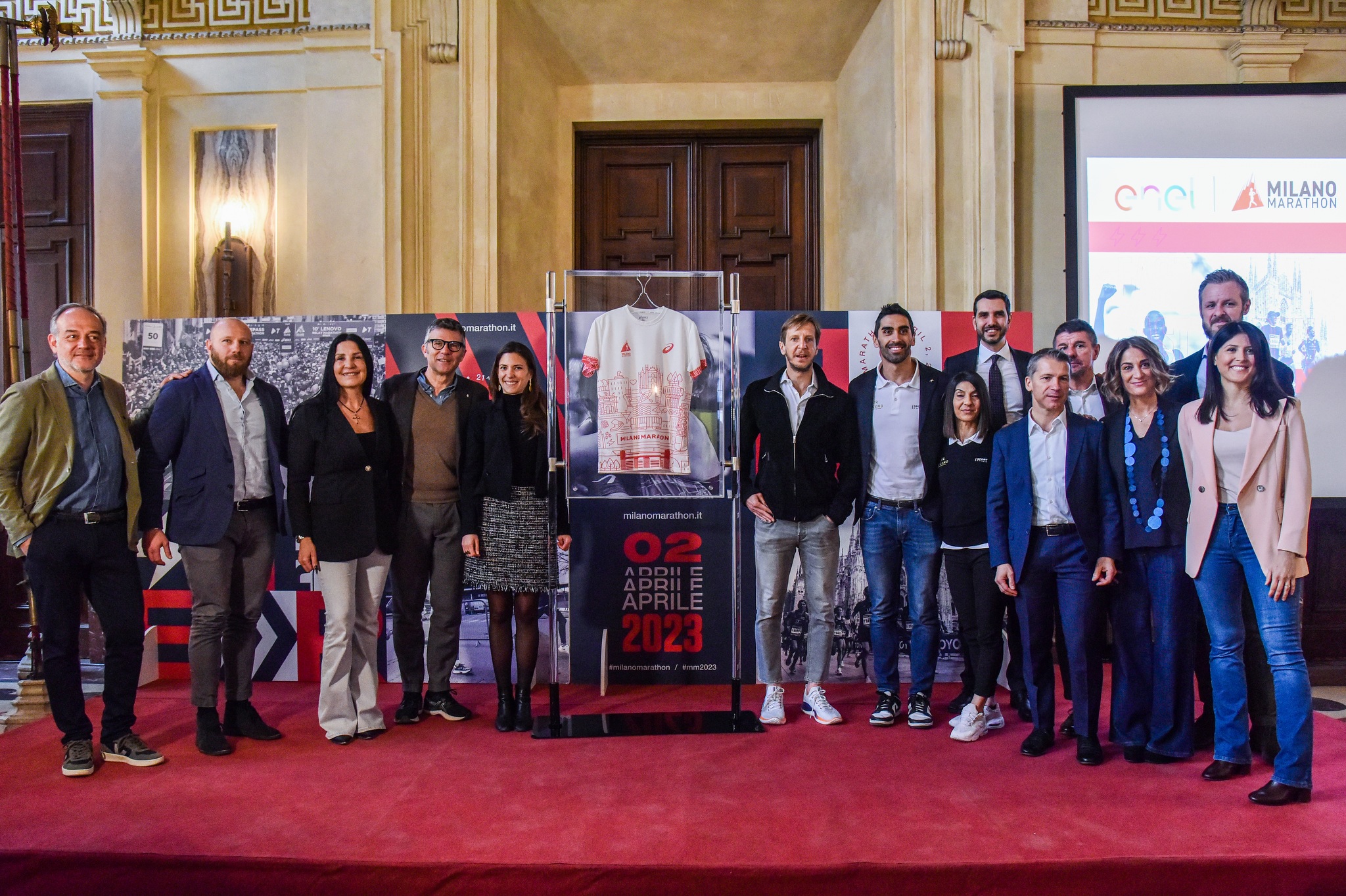 La Enel Milano Marathon 2023 è stata svelata oggi a Palazzo Marino. La presentazione, moderata dalla giornalista di Sky Sport Federica Frola e dalla campionessa azzurra di maratona Lucilla Andreucci, ha visto protagonisti Martina Riva (Comune di Milano), Paolo Bellino (RCS Sports & Events), Paolo Di Cesare e Leonardo Ghiraldini (Nativa), Lara Magoni (Regione Lombardia), Francesco Carelli (Enel energia), Riccardo Bartola (Snaitech), Alberto Spinelli (Lenovo), Giacomo Giacani (Nestlé Water), Massimo Ambrosini (Fondazione Italiana Diabete), Monica Gagliardi (Arcaplanet) e le Legend di Sport e Salute Filippo Magnini e Luana Pilia.
