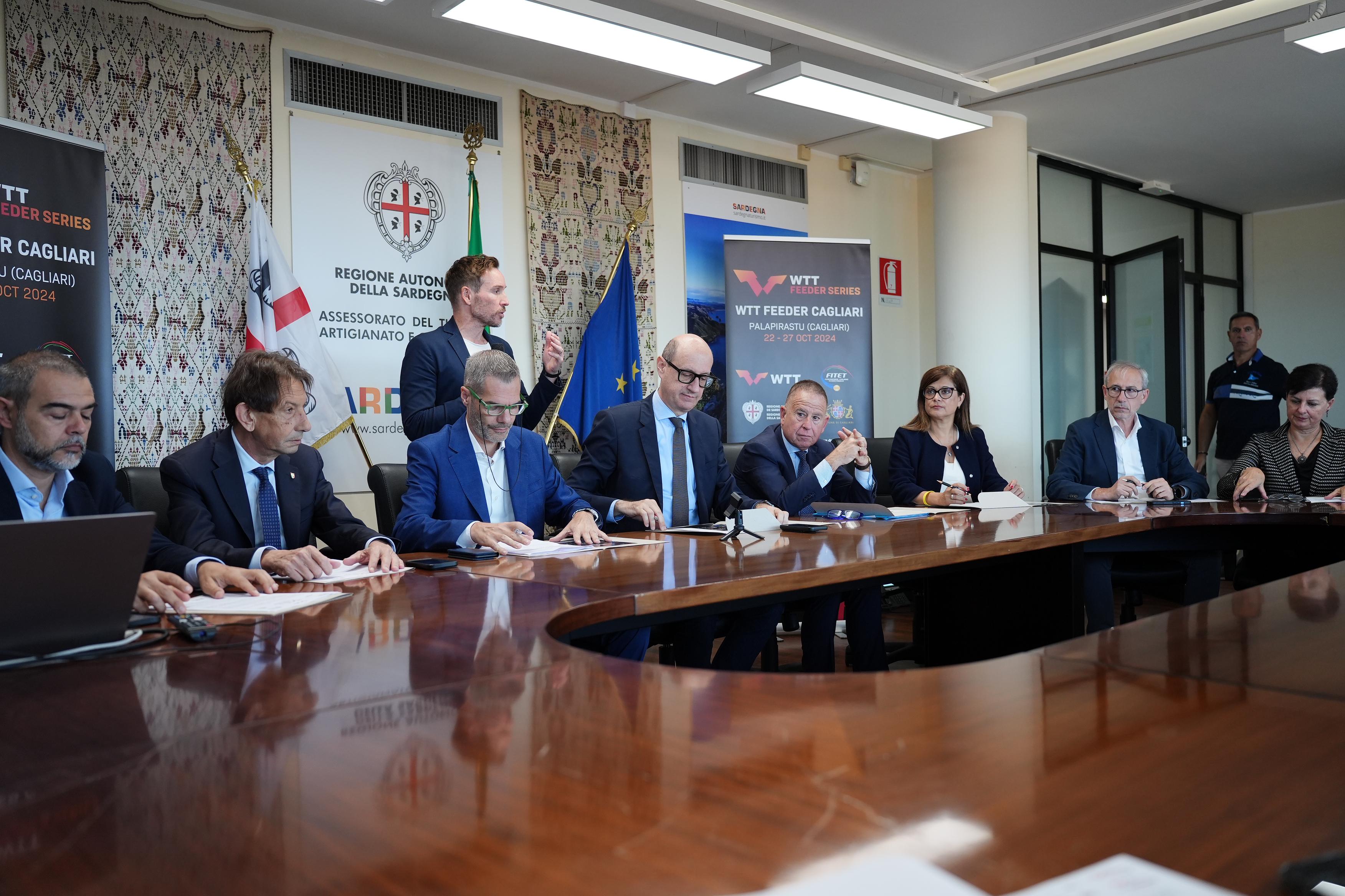 Il presidente del CONI Sardegna Bruno Perra sottolinea che «il legame che unisce la Sardegna al tennistavolo è speciale e sono felice che un torneo prestigioso come il WTT Feeder si svolga a Cagliari. Queste giornate offriranno a tantissimi appassionati un grande spettacolo di sport con pongisti provenienti da tutto il mondo: auguro a tutti i partecipanti una bella competizione e mando un affettuoso saluto a tutti gli atleti in gara. Il grande tennistavolo torna in Sardegna con un evento di altissimo livello dopo i Campionati Italiani dell’anno scorso e sono sicuro che sarà ancora una volta un appuntamento memorabile. Voglio ringraziare di cuore tutti coloro che, con la loro passione, hanno reso possibile questa manifestazione, in particolare la FITeT, la ITTF, la Regione Sardegna, il Comune di Cagliari, tutti gli addetti ai lavori e i volontari».