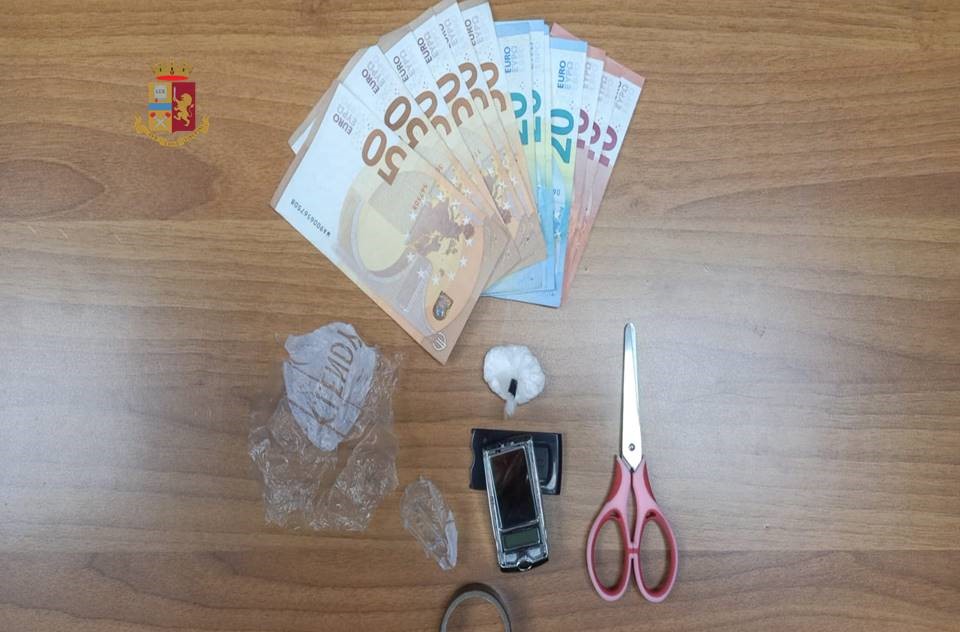 Sempre in cucina, i poliziotti hanno rinvenuto un bilancino elettronico di precisione perfettamente funzionante, una forbice utilizzata presumibilmente per il confezionamento della droga, un rotolo di nastro isolante dello stesso tipo di quello utilizzato per il confezionamento della presunta sostanza stupefacente rinvenuta, altro materiale utile per il confezionamento delle dosi, nonché la somma di 430 euro suddivisa in banconote di vario taglio, presumibile provento dell’attività illecita.