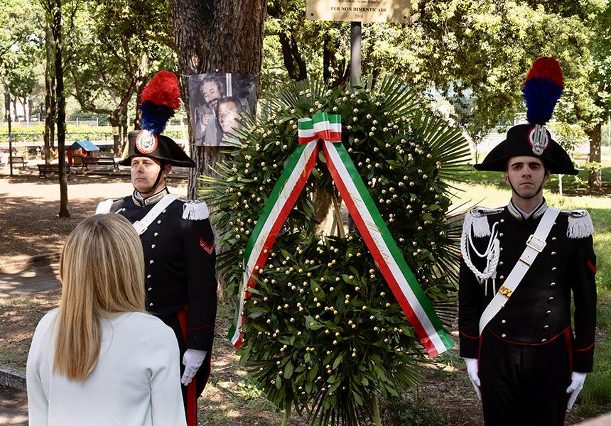 Strage di Capaci: Meloni depone corona nel parco intitolato a Falcone e Borsellino