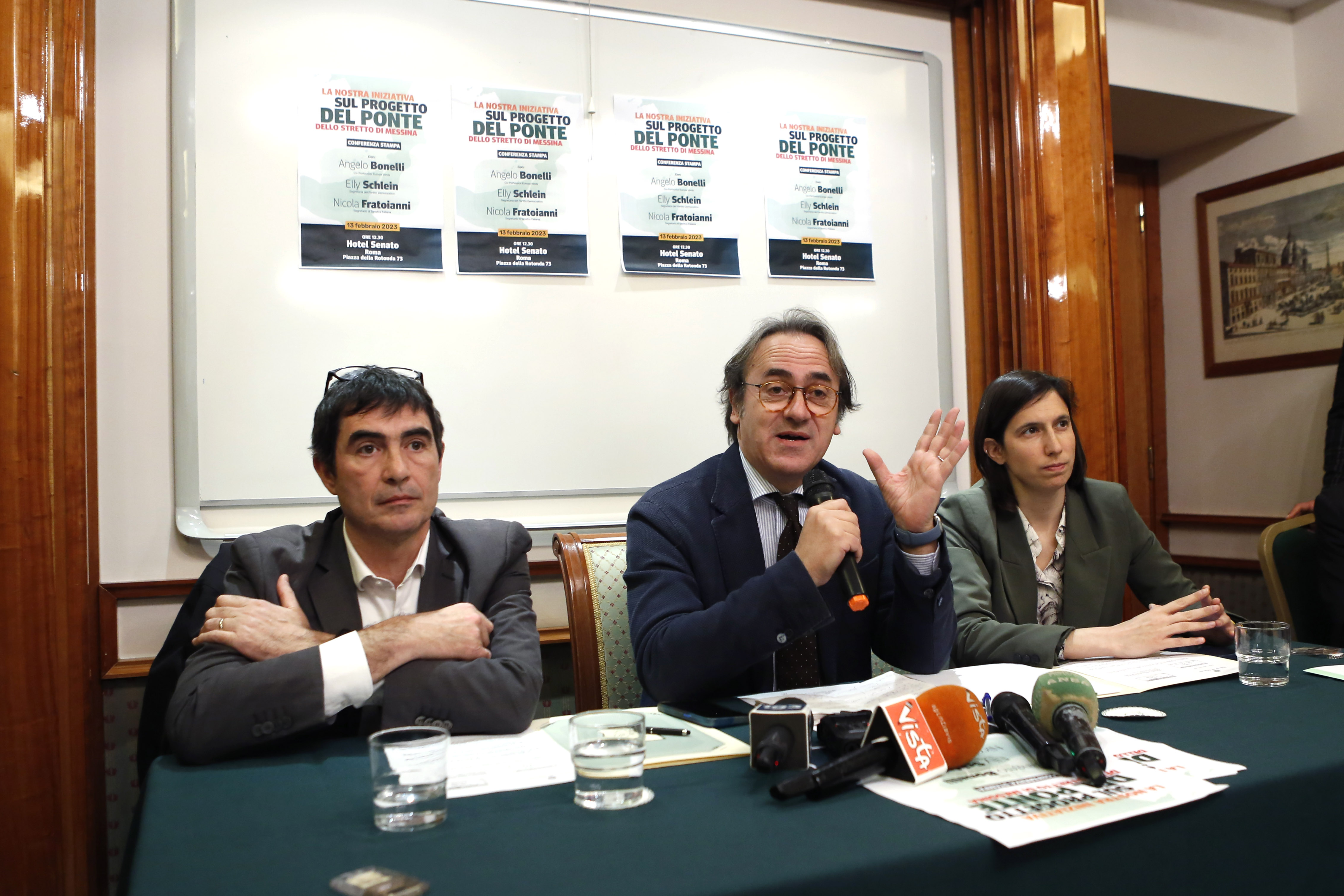 “Siamo qui per presentare un’iniziativa, un esposto alla Procura di Roma perché si indaghi sulla realizzazione del ponte“, ha detto Angelo Bonelli (Avs), in conferenza stampa congiunta con la Segretaria del Pd, Elly Schlein, e il leader di Sinistra Italiana, Nicola Fratoianni.