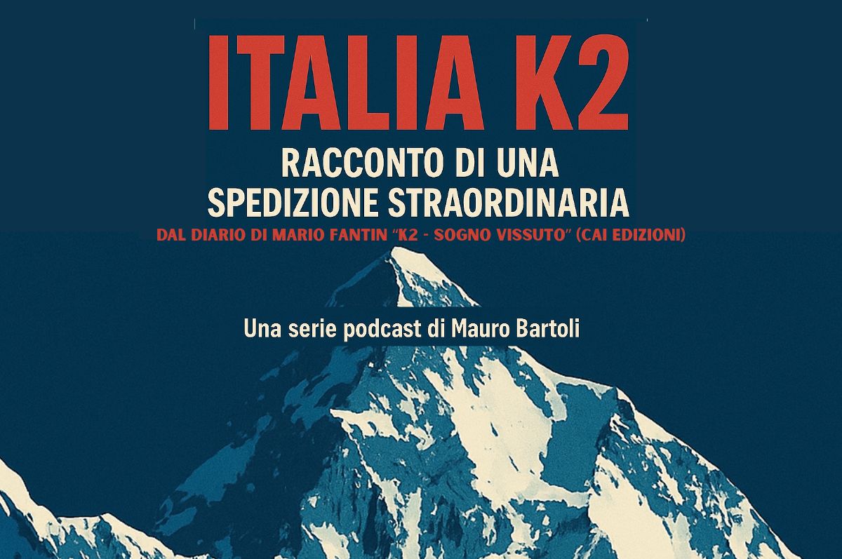 A settantun anni dalla storica impresa, giovedì 31 luglio arriva il nuovo podcast Original RaiPlay Sound “Italia K2 – Racconto di una spedizione straordinaria”, scritto da Mauro Bartoli, con il montaggio e il sound design di Lorenzo K. Stanzani, un viaggio sonoro nella leggenda dell’alpinismo italiano attraverso le parole e le immagini di chi c’era, e di chi ne ha raccolto l’eredità.