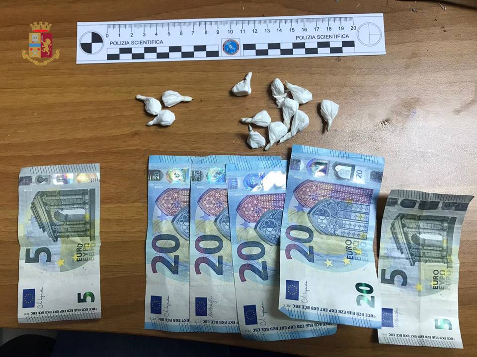 Nel portafoglio di quest’ultimo sono stati rinvenuti 3 involucri termosaldati con cellophane bianco contenenti sostanza stupefacente del tipo “cocaina” del peso di circa due grammi e 90 euro, presumibile provento dell’attività di spaccio.