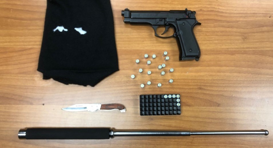 I Falchi hanno recuperato anche un passamontagna ed un manganello telescopico che non sono stati posti sotto sequestro penale ma acquisiti per ulteriori indagini.