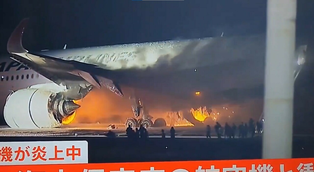 Tragedia sfiorata all'Aeroporto di Tokyo Haneda, dove un aereo di linea della Japan Airlines ha preso fuoco.