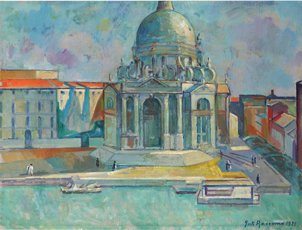 Oltre alle prime prove pittoriche e a disegno - tra le novità di questa mostra – si passa quindi alle sue residenze veneziane: lo studio a Ca’ Pesaro tra il ’23 e il ’28, quello a Palazzo Carminati dal ’28 al ’47; sono di questo periodo, cruciale nella vita e nell’attività dell’artista, opere fondamentali come Il discepolo e l'Autoritratto con la stufa, nonché nature morte e vedute di Venezia e di Burano, composizioni strutturate e dal solido disegno con le quali Ravenna si avvicina al novecentismo.