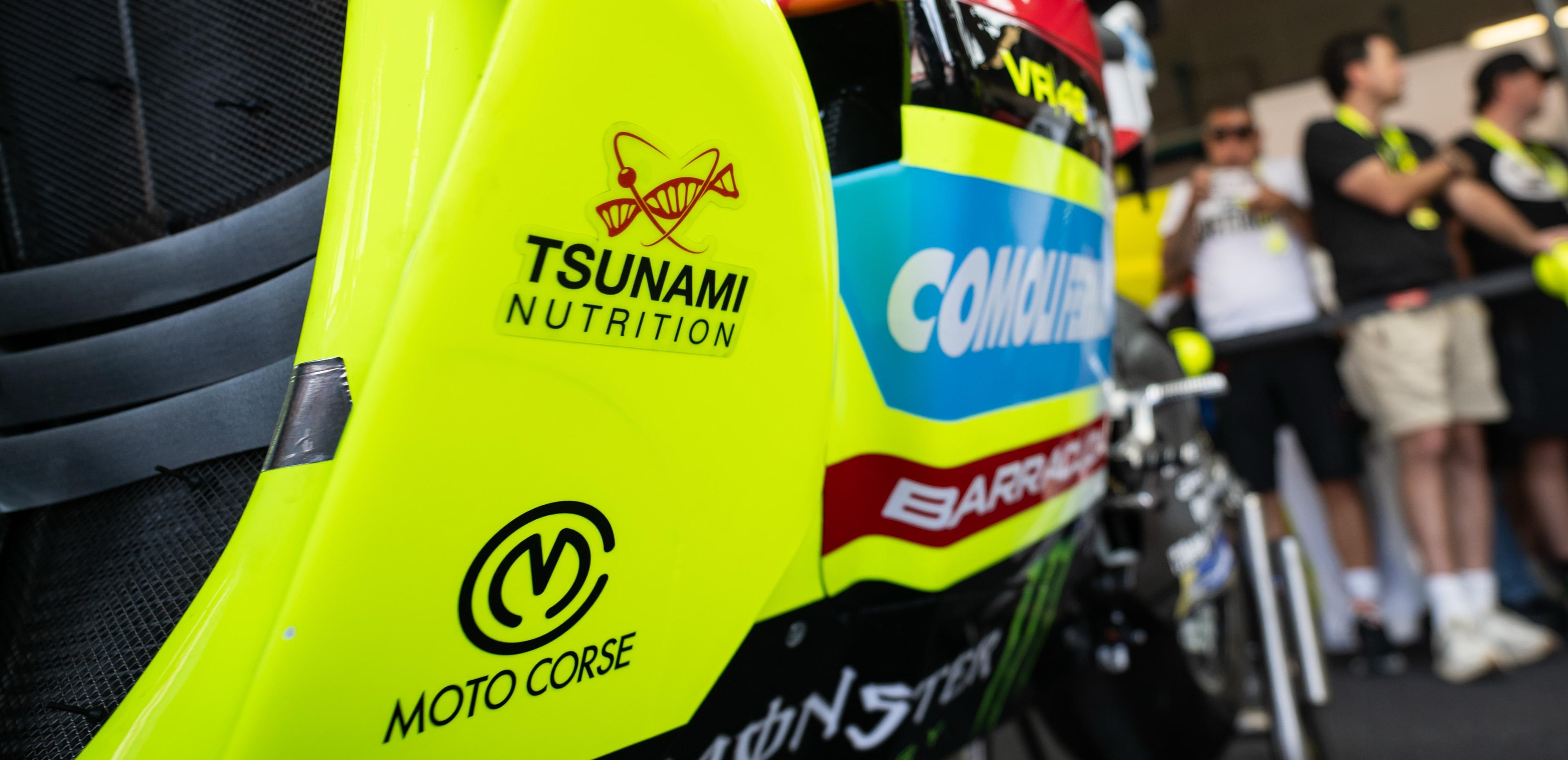 Da questo weekend, in occasione del GP di San Marino e della Riviera di Rimini, il logo Tsunami Nutrition sarà visibile sulle divise dello staff e dei meccanici del Pertamina Enduro VR46 Racing Team, oltre che sulla livrea delle moto.