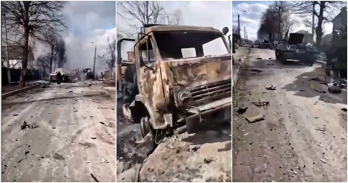 I soldati di Kiev hanno issato la bandiera nella città, distante 30 km dalla Capitale, teatro di bombardamenti russi e scontri negli ultimi giorni.