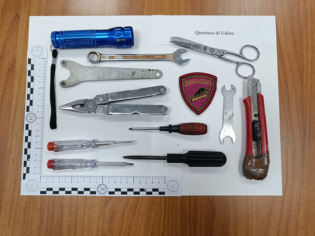 Tramite perquisizione eseguita d’iniziativa dagli operanti si rinvenivano, celati all’interno della borsa della donna, numerosi arnesi atti allo scasso, nonché un taglierino ed una torcia; strumenti che venivano sottoposti a sequestro probatorio in attesa delle determinazioni dell’Autorità Giudiziaria.