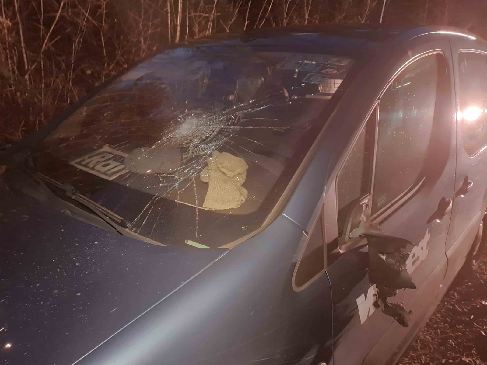Il mezzo più colpito è quello che portava il distintivo di riconoscimento Rai a cui è stato sfondato il parabrezza e distrutta la fiancata. Gli equipaggiamenti all’interno dei mezzi non sono stati in alcun modo toccati.
