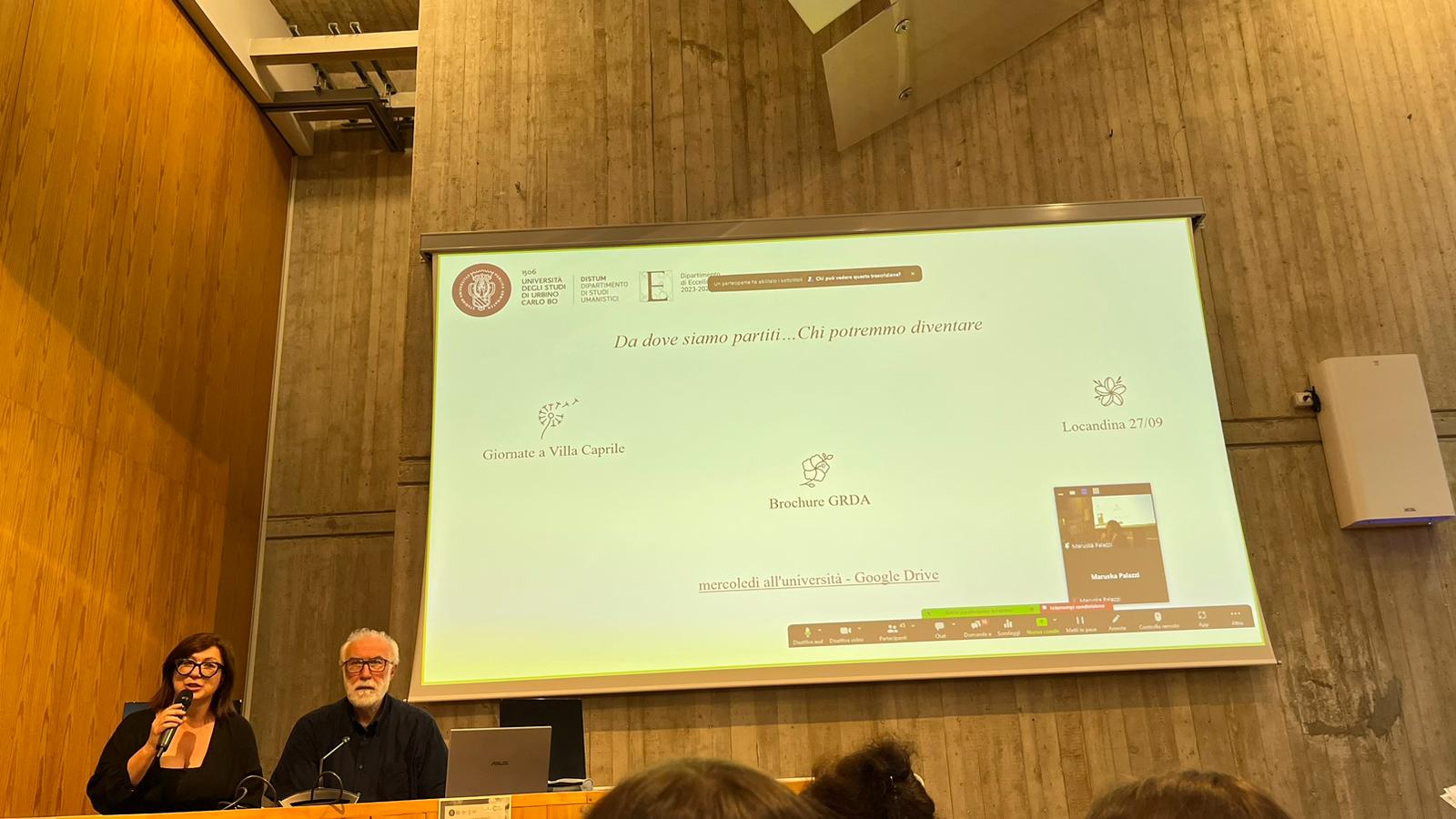 Durante le tre ore di incontro il prof. Riccardo Santolini (DISTUM), la prof.ssa Rossella D'Ugo (DISTUM), le dott.sse Laura Giamperi e Anahi Elena Ada Bucchini (DISB), Michela Gaudenzi (Responsabile Pesaro Musei) e la Dottoranda Marta Salvucci (DISCUI), hanno affrontato diverse tematiche legati ai temi dell’educazione in e con la Natura che hanno coinvolto i partecipanti che hanno avuto l’opportunità di confrontarsi sui temi quali la complessità del sistema ambientale e i fattori che influenzano la biodiversità; la Progettazione in Verde con riferimento a Pesaro 2024 Capitale della Cultura dove il gruppo GRDA parteciperà con un progetto dal titolo Botanica partecipata; l’Educazione in e alla Natura. Sono emersi tanti spunti per una possibile formazione futura dei docenti e delle docenti e, soprattutto, è emerso il grande interesse degli studenti in merito ai temi ambientali e alla tutela del territorio.