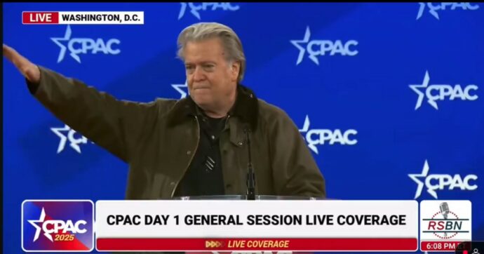 Un'altra polemica investe il circolo di Donald Trump negli Stati Uniti: il suo ex stratega alla Casa Bianca, Steve Bannon, è accusato di aver fatto il saluto nazista mentre stava intervenendo alla convention dei conservatori, in corso a Washington.