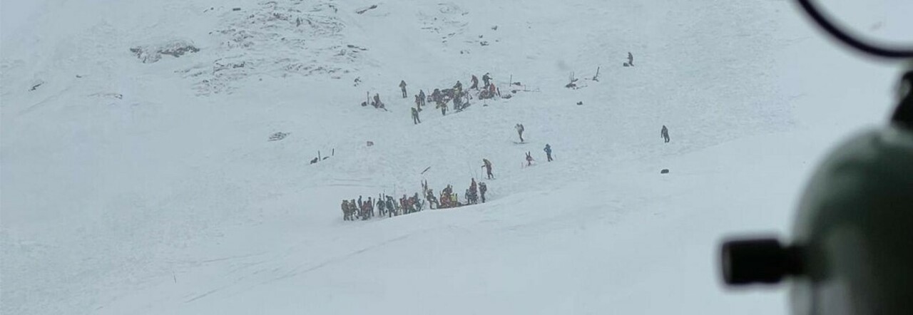 La slavina si è staccata a 2.445 metri di quota. Mobilitati elicotteri, unità cinofile e Soccorso Alpino. Il dramma a pochi giorni dal decimo anniversario della tragedia del Monte Nevoso.