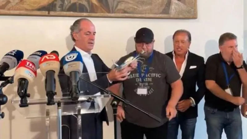 In Veneto è emergenza granchio blu: a dimostrarlo è la presentazione di due esemplari, un maschio e una femmina, ad opera del Governatore, Luca Zaia, che stamani li ha fatti vedere ai giornalisti in conferenza stampa, per evidenziare "che questo animale spacca tutto e fa disastri".