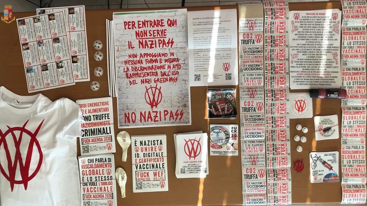 Nell’ambito delle operazioni - supportate anche da personale della Sezione Operativa per la Sicurezza Cibernetica Polizia Postale e delle Comunicazioni di Verona – sono stati sequestrati indumenti riproducenti il noto simbolo del sodalizio “Vi_Vi”, materiale propagandistico del medesimo gruppo (adesivi, spille volantini di diverse dimensioni, palloncini gonfiabili, poster) e un grosso pennarello con vernice rossa all’interno, usualmente utilizzato per le azioni di imbrattamento/danneggiamento.