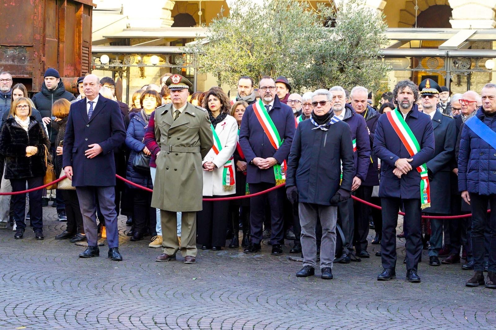 Per questo Verona, in linea con quanto stabilito con la Comunità ebraica in tutta Italia, ha anticipato le celebrazioni. La commemorazione è iniziata in piazza Bra con la deposizione di una corona al monumento ai Deportati a cui hanno partecipato il sindaco Damiano Tommasi, il Prefetto Demetrio Martino, il Capo di Stato Maggiore del Comfoter di Supporto Generale di Brigata Antonello De Sio e l’assessore alla Memoria storica Jacopo Buffolo.